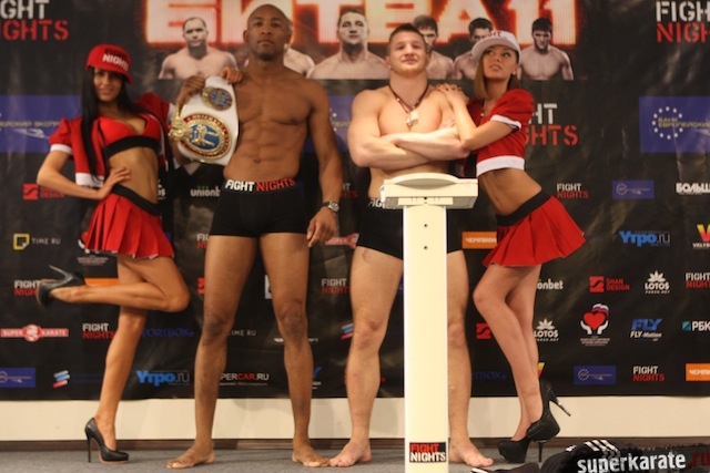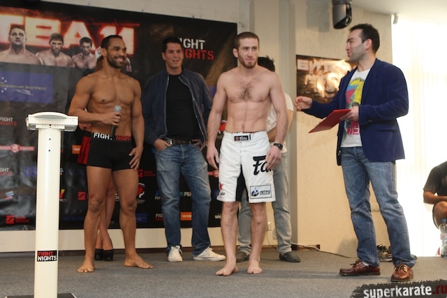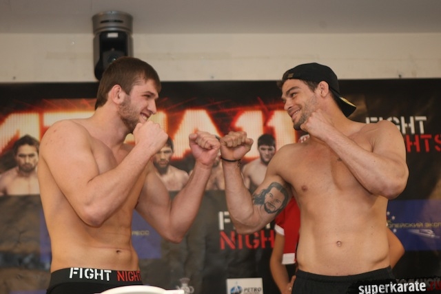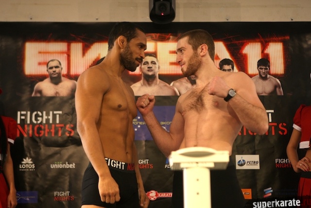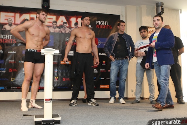 19 апреля в Москве, в пресс-центре БСА «Лужники», состоялась пресс-конференция, посвященная турниру FIGHT NIGHTS «Битва под Москвой 11». Сразу по окончании пресс-конференции состоялось официальное взвешивание участников турнира.