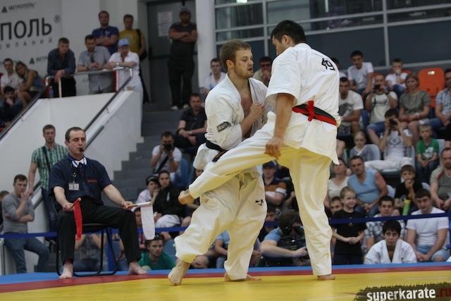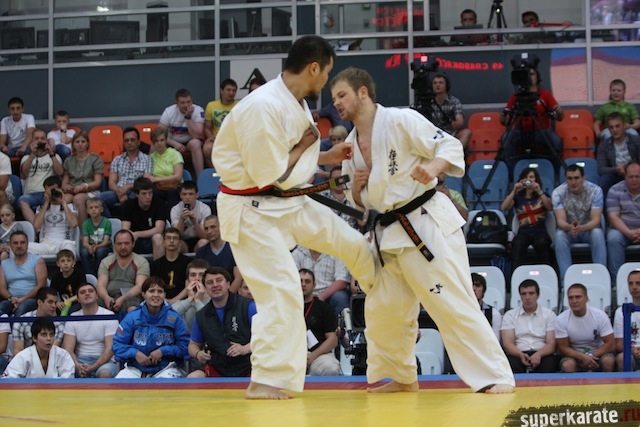 Фоторепортаж о боях между победителями Кубка России по киокусинкай, состоявшегося 18 и 19 мая в Московском центре боевых искусств. Михайлов Александр, Мезенцев Иван, Садвокасов Дармен и Сархошян Давид в битве за Кубок Чемпионов.