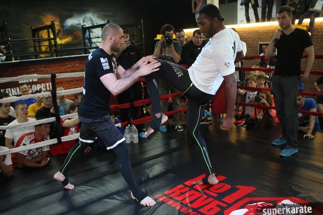 Джон Джонс был настроен очень позитивно и благожелательно. И постарался как можно более доходчиво объяснить собравшимся то, что показывал и пытался донести. Больше всего внимания Джонс уделил тактической гибкости, разнообразию приемов, обманным движениям и мгновенному использованию ситуации для достижения победы над соперником.