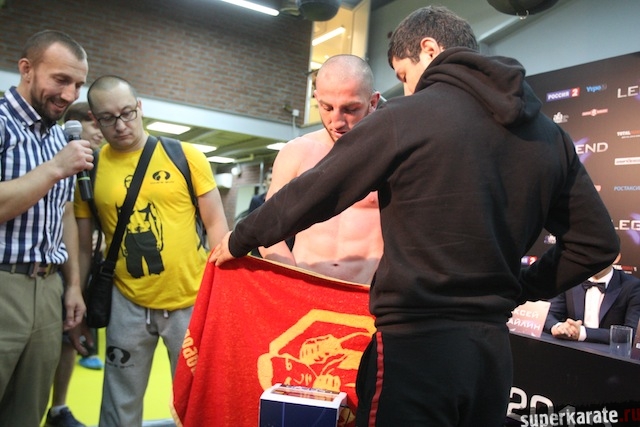 24 мая в Клубе единоборств № 1 состоялось официальное взвешивание участников бойцовского шоу «Легенда», а также их общение с представителями прессы. Также журналисты получили возможность задать вопросы организаторам шоу и почетным гостям мероприятия.