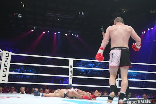 Во втором полуфинальном поединке турнира средневесов по правилам К-1, состоявшегося в рамках бойцовского шоу «Легенда», Джабар Аскеров (Россия) во втором раунде нокаутировал Энрике Гогохия (Украина).