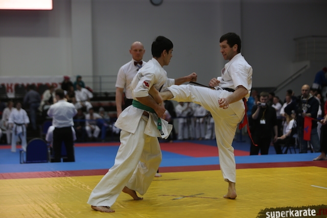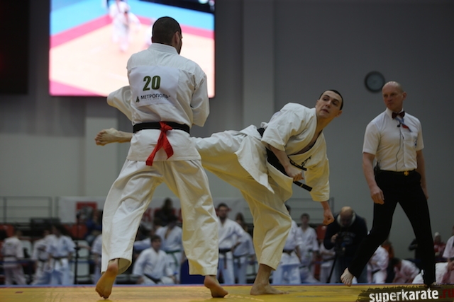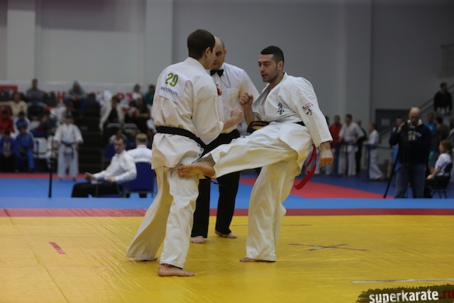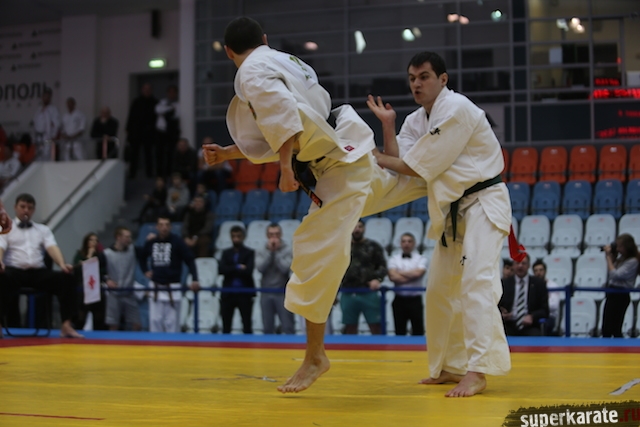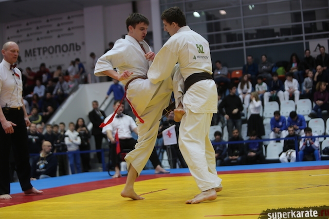 4 апреля в Московском центре боевых искусств состоялся XI Чемпионат России по каратэ-до Кёкусин-кан по кумитэ и ката среди мужчин и женщин. В первой части фотогалереи, посвященной этому мероприятию смотрите фотографии предварительных боев у мужчин.
