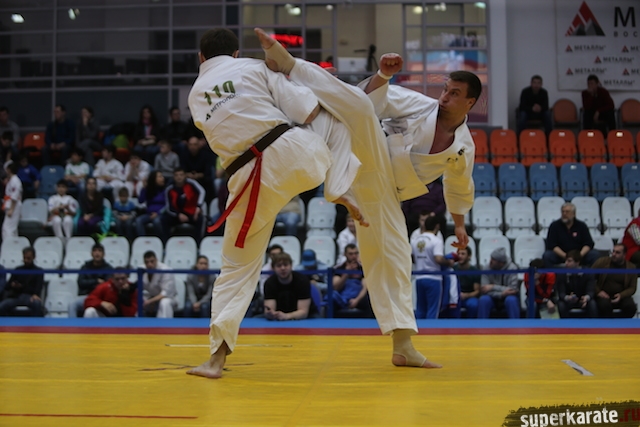 Вторая часть фотографий предварительных боев XI Чемпионата России по каратэ-до Кёкусин-кан по кумитэ и ката среди мужчин и женщин, состоявшегося 4 апреля в Московском центре боевых искусств. Проходных боев на турнире практически не было. Большинство поединков заканчивались только после нескольких продлений времени.