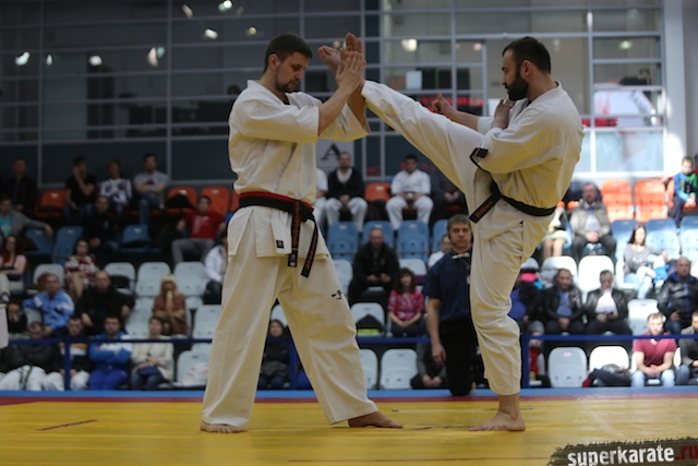 12 апреля в Московском центре боевых искусств состоялись сразу четыре мероприятия. Это чемпионат Москвы по киокушинкай каратэ-до среди мужчин и женщин по кумитэ; Абсолютный чемпионат Москвы по киокушинкай; чемпионат Москвы по ката и Кубок МГФК среди мужчин и ветеранов по кумитэ. В первой части фотогалереи, посвященной этому празднику киокушинкай, смотрите фотографии соревнований по ката и фотографии открытия мероприятия.
