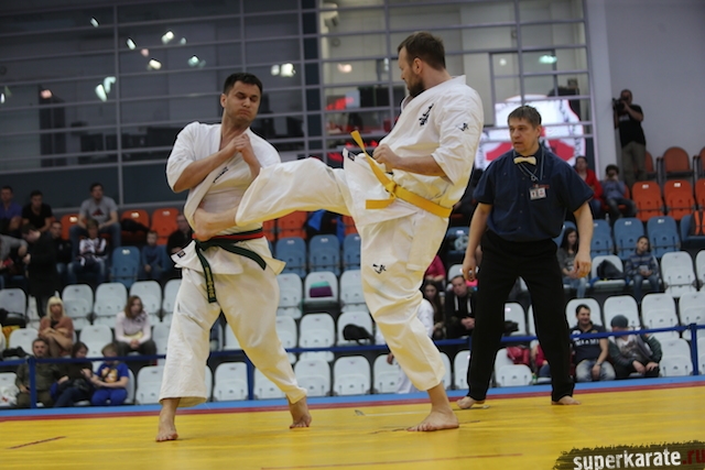 12 апреля в Московском центре боевых искусств в рамках чемпионата Москвы по киокушинкай каратэ-до среди мужчин и женщин по кумитэ прошли поединки Кубка МГФК среди мужчин и ветеранов. Смотрите вторую часть фотографий, посвященную поединкам тех, кто только начинает свой путь в киокушинкай, и тех, кто считает, что даже в 50 лет вешать перчатки на гвоздь рановато.
