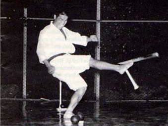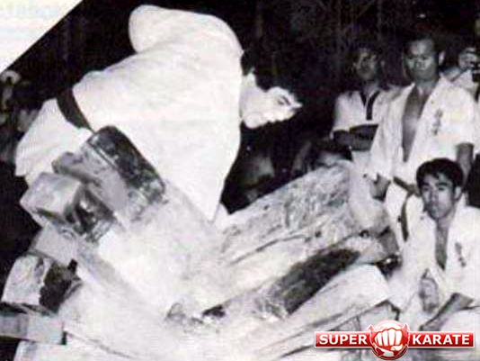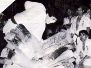 Хацуо Рояма, 4 дан последовательно сломал 4 бейсбольных биты голенью.
