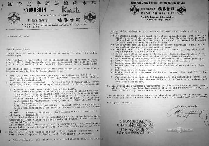 With this letter, I would like to draw your attention to the following decisions made by I.K.O. Kyokushinkai Honbu.