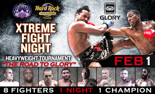 1 февраля в городе Тусла (США, Оклахома) при поддержке американской промоутерской компании Xtreme Fight Night стартует серия турниров Road to GLORY. Главным событием турнира в Тусле станет восьмерка в весовой категории до 95 кг. Участниками восьмерки стали: