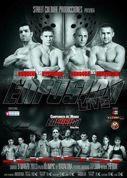 9 марта в Барселоне (Испания) состоится турнир по кибоксингу Enfusion Live, в главном поединке которого встретятся самый известный на сегодняшний день испанский боец Абрахам Рокуени и. входящий в мировую десятку лучших бойцов среднего веса, Артур Кишенко. Победить Рокуени в Испании можно только в двух случаях. В случае нокаута, или в случае объективного судейства. Именно серьезные проблемы с судейством стали причиной того, что совсем недавно в боях с Рокуени были нагло обворованы Альберт Краус и Энди Сауэр. И опять же, только объективность судейства (хотя и неполная) помогла Сауэру в мае прошлого года взять реванш на турнире K-1 MAX в Мадриде.