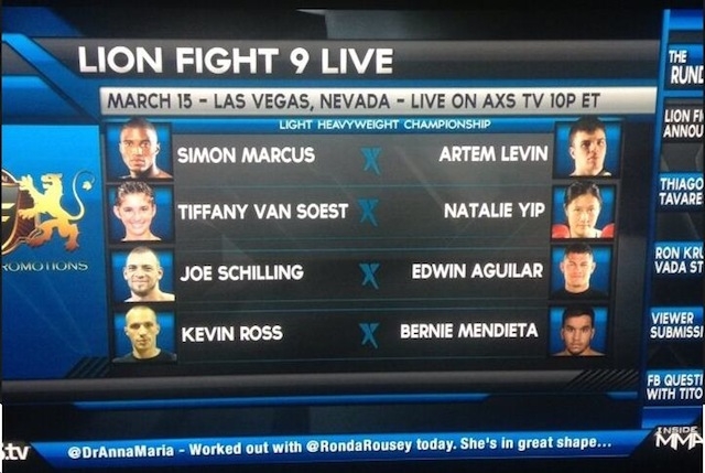 Компания Lion Fight Promotions объявила о том, что 15 марта в Лас-Вегасе состоится турнир по тайскому боксу Lion Fight 9, в главном поединке которого встретятся Артем Левин и Саймон Маркус. Турнир будет показан в прямом эфире на AXS TV.Следует отметить, что Саймон Маркус, на сегодняшний день, является самым достойным кандидатом на бой против Левина по правилам муай тай. И по праву занимает звание претендента № 1 на принадлежащий Артему Левину титул чемпиона мира по версии WMC в весовой категории до 79 кг.