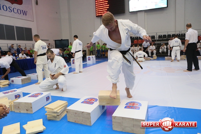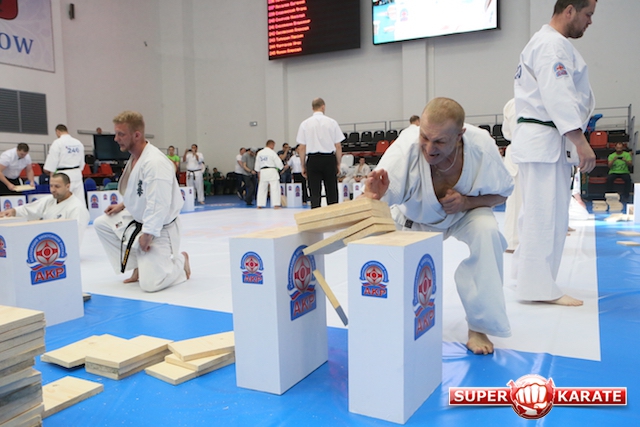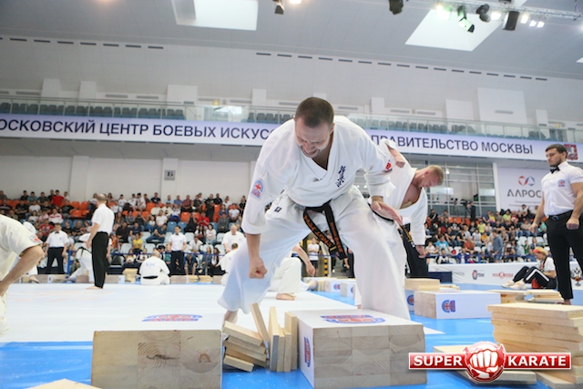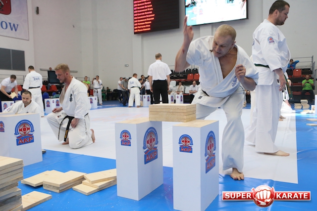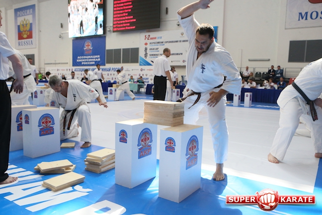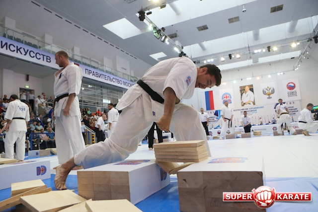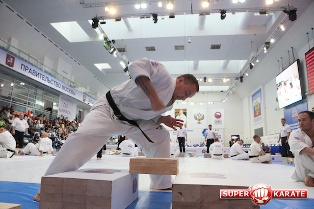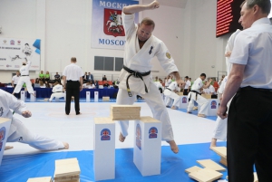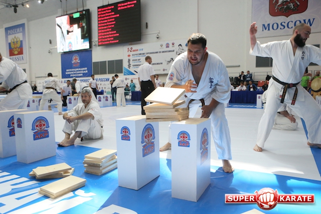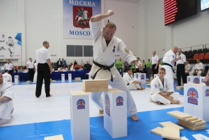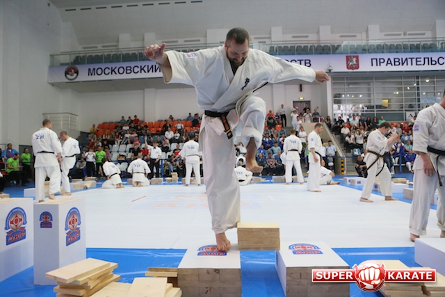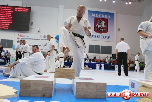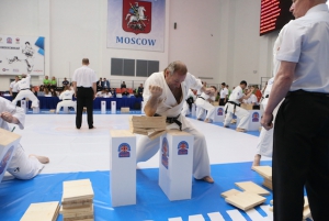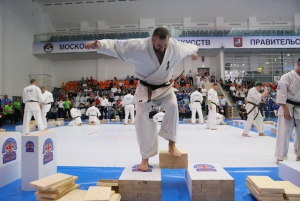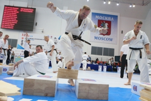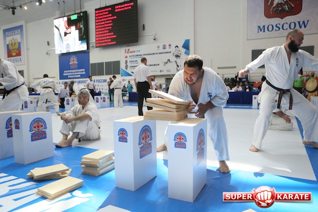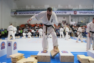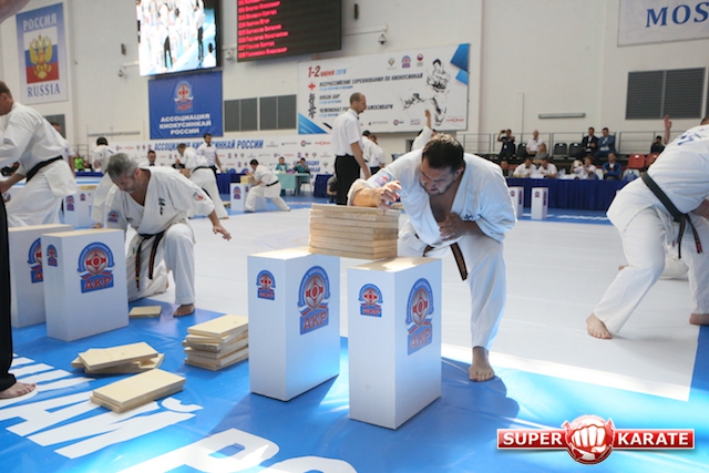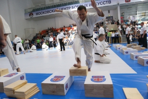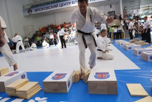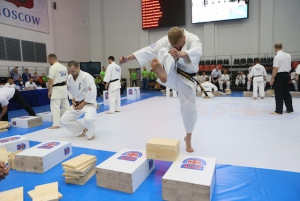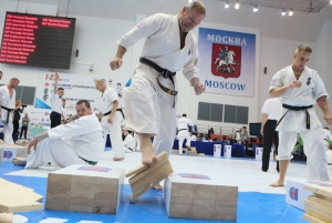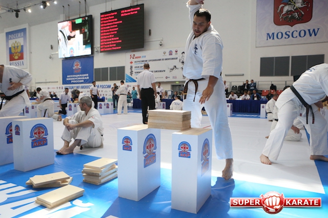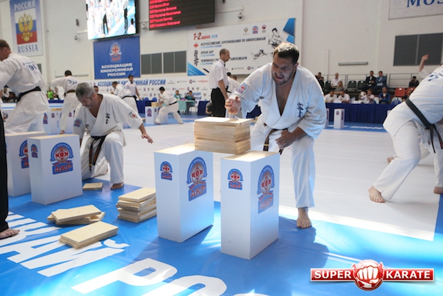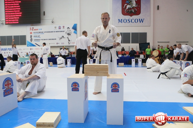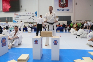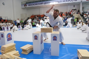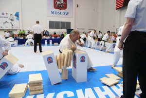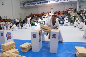 2 июня в Московском центре боевых искусств состоялся чемпионат России среди мужчин по тамесивари. Много досок было разбито. Много не разбито. На каждое из четырёх упражнений было выделено по две попытки. Но и это, порой, не помогало. Кто-то переоценивал свои возможности. Кого-то подводила техника выполнения. Кто-то просто не смог Настроиться. Ну а кому-то всё удалось.
