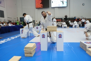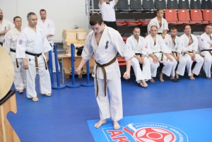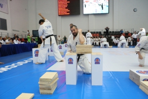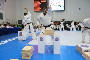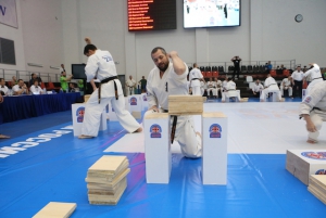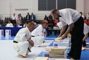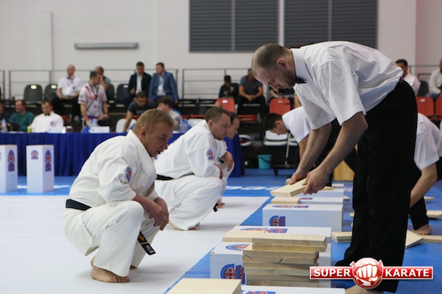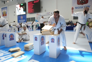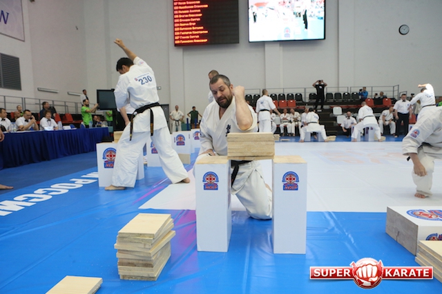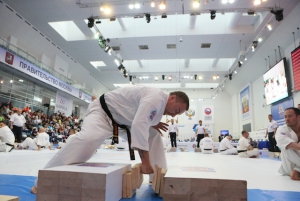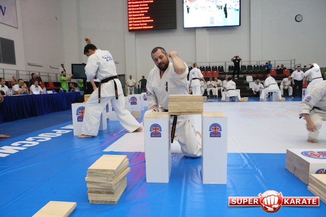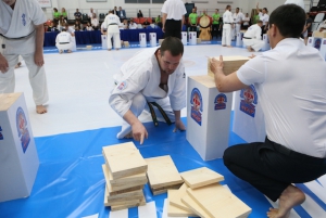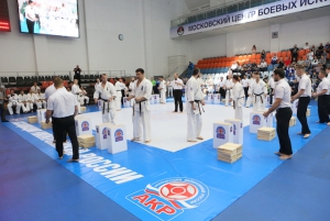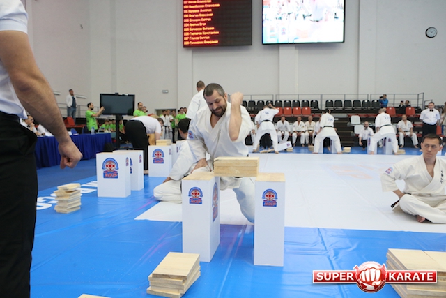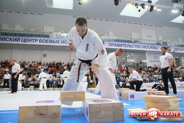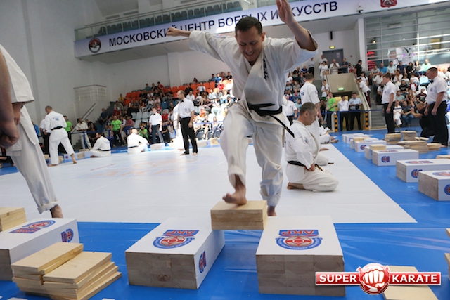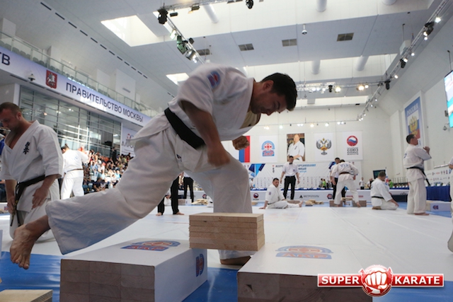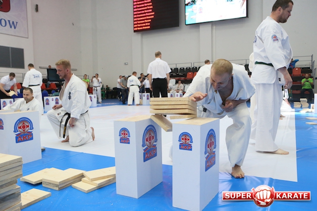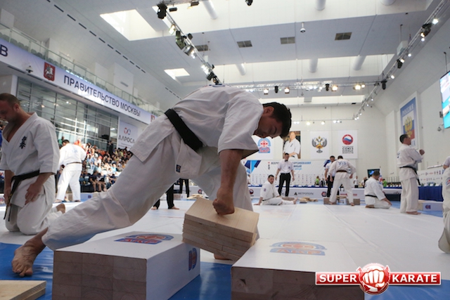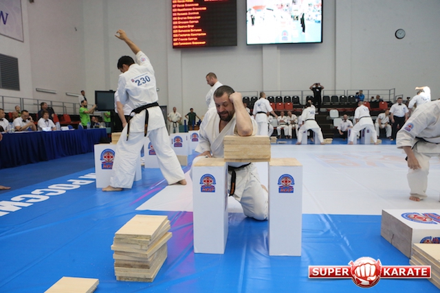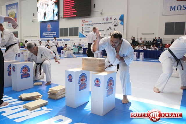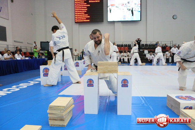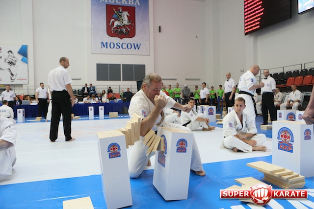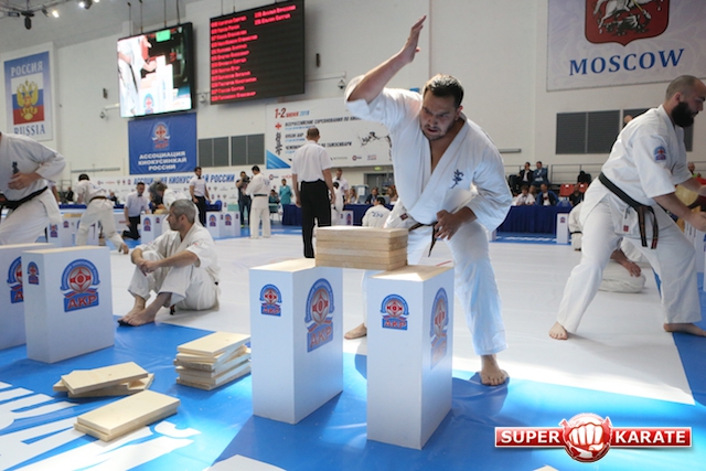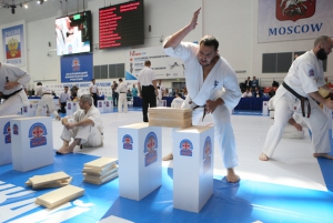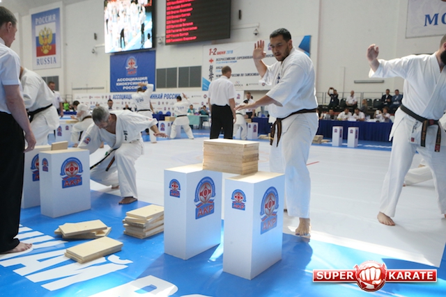 2 июня в Московском центре боевых искусств состоялся чемпионат России среди мужчин по тамесивари. Много досок было разбито. Много не разбито. На каждое из четырёх упражнений было выделено по две попытки. Но и это, порой, не помогало. Кто-то переоценивал свои возможности. Кого-то подводила техника выполнения. Кто-то просто не смог Настроиться. Ну а кому-то всё удалось.