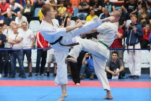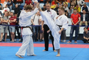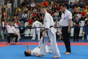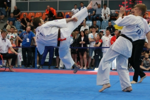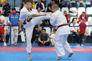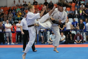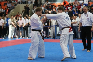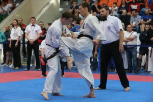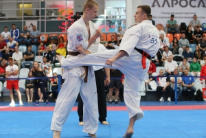 Начало отборочных боёв Всероссийских соревнований по киокусинкай среди мужчин и женщин. Фотографии