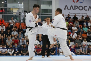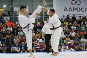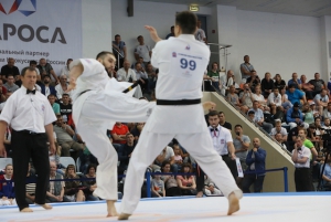 Фотографии финальных боёв Всероссийских соревнований по киокусинкай среди мужчин и женщин