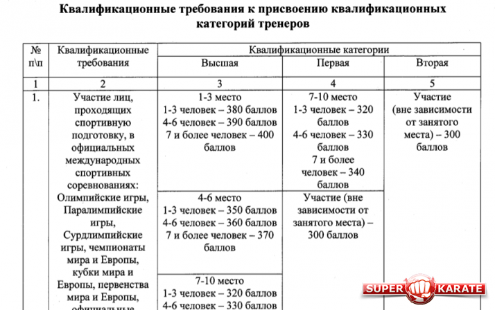 Помимо проверки перечня документов, комиссия проводит оценку профессиональной деятельности тренера на соответствие квалификационным требованиям в баллах, согласно приложению.