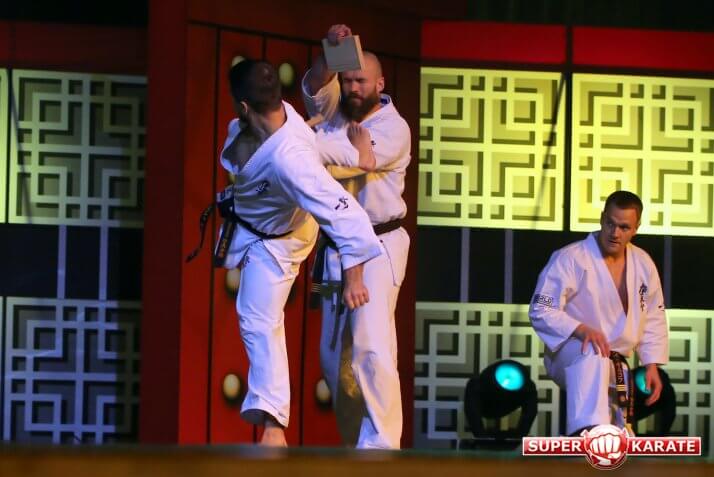 Киокушиновская «показуха» без тамешивари? Не слышали! Жаль только, что организаторы перестраховались и не разрешили вдоволь наколотить досок. Однако, малое количество досок, сборники уверенно компенсировали сложностью ударов. Две жирные точки в части разбиваний поставил сэнсэй Mad Max, разбив лоу-киками две биты.