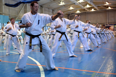 Школа стартовала с прогона всей экзаменационной программы от 10 кю и до 3 Дана. Почти пять часов тренировок в первый день пролетели незаметно. Задания по технике и ката сменялись спарринговыми и силовыми, что не давало участникам застаиваться. К вечеру весь объём школы был пройден.