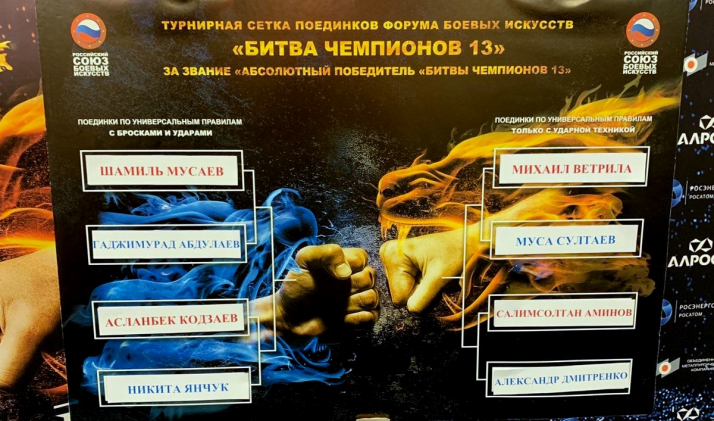 Восьмерка бойцов сразится в мини турнире за звание Абсолютного победителя «Битвы Чемпионов 13». Одним из участников станет киокушиновец Маса Султаев из Гудермеса, воспитанник известного бойца Лечи Курбанова.