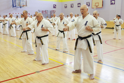 В заключительный день летней школы состоялся аттестационный экзамен, по итогам которого в федерации появилось пять новых сэнсэев. Участники сборов, которые не принимали участие в экзамене, тренировались под руководством шихана Станислава Винокурова и отрабатывали работу в парах с ударами руками в голову.