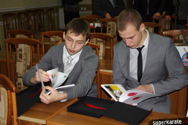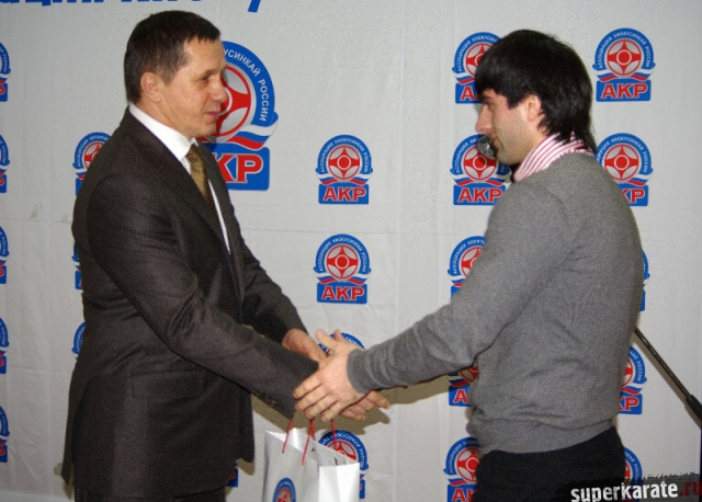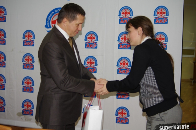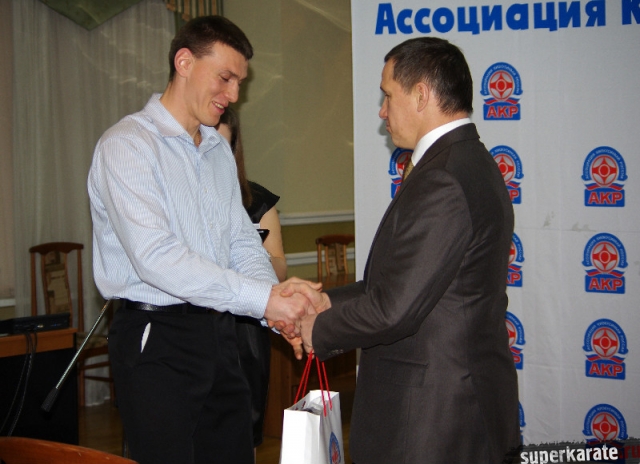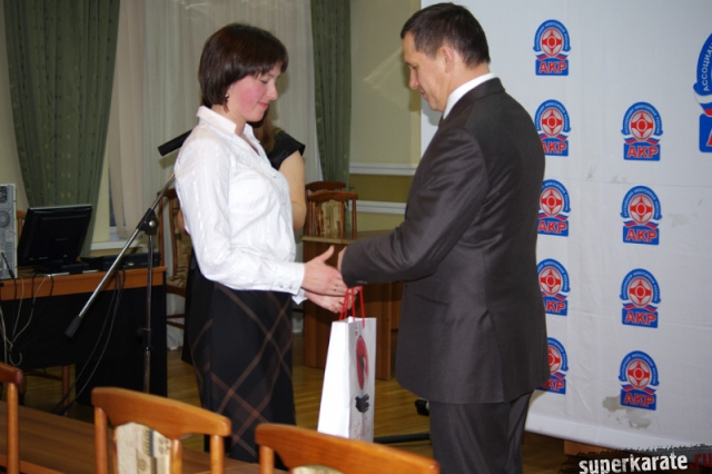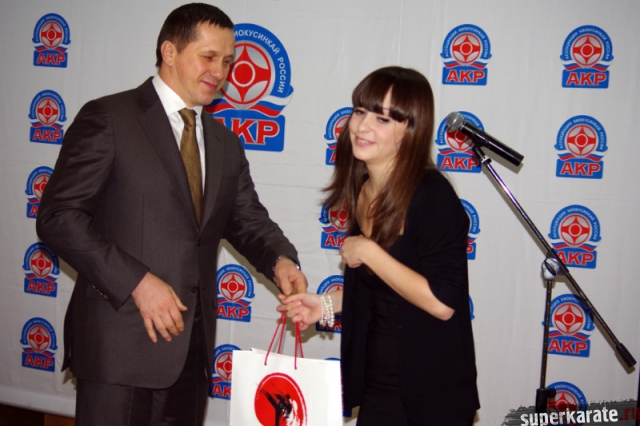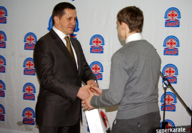 Сегодня состоялась Церемония чествования спортсменов Ассоциации Киокусинкай России по итогам 2011 года. Председатель АКР, шихан Юрий Петрович Трутнев лично поздравил ребят и вручил им памятные подарки.