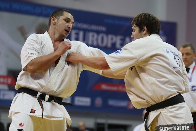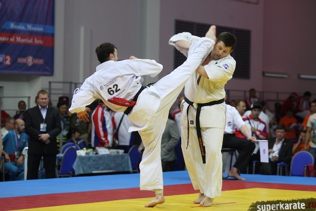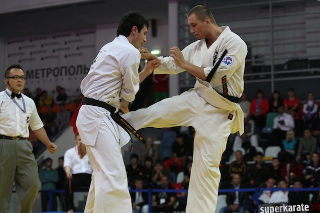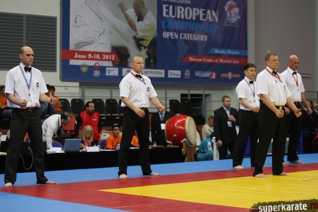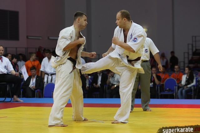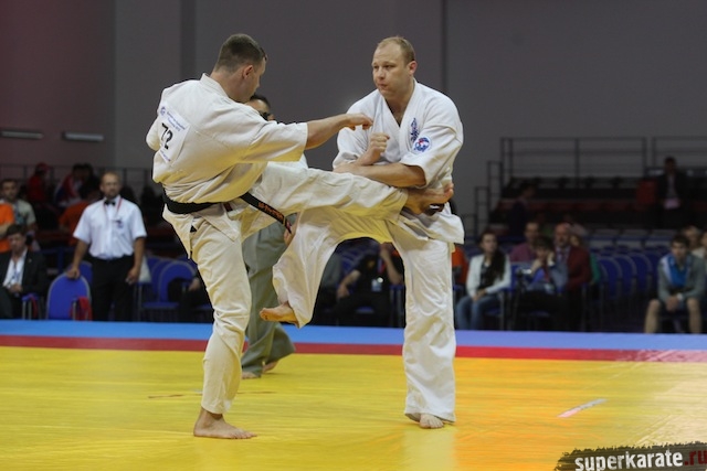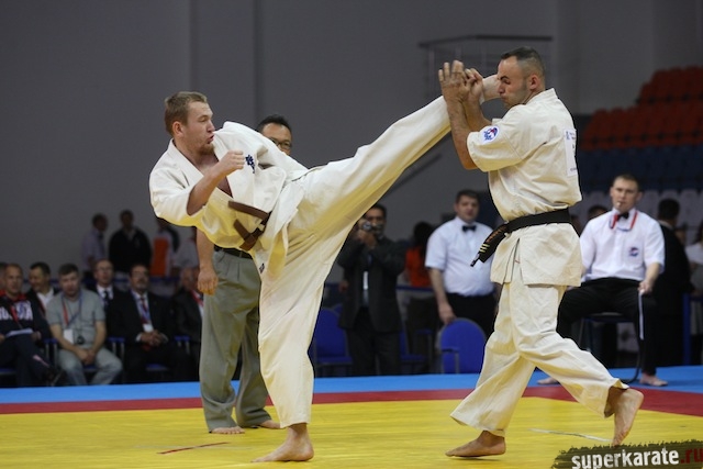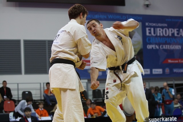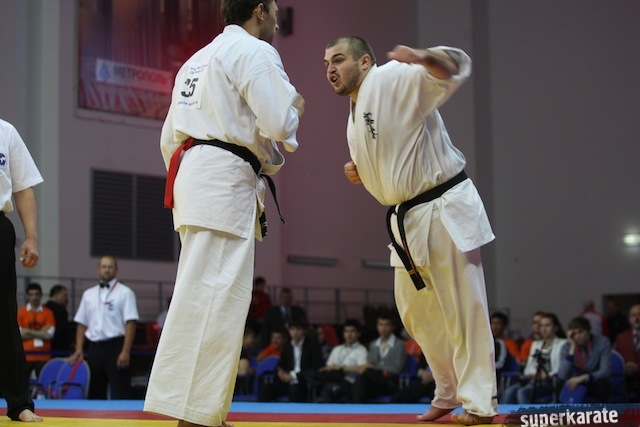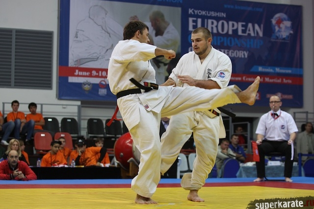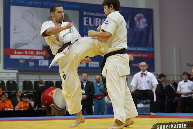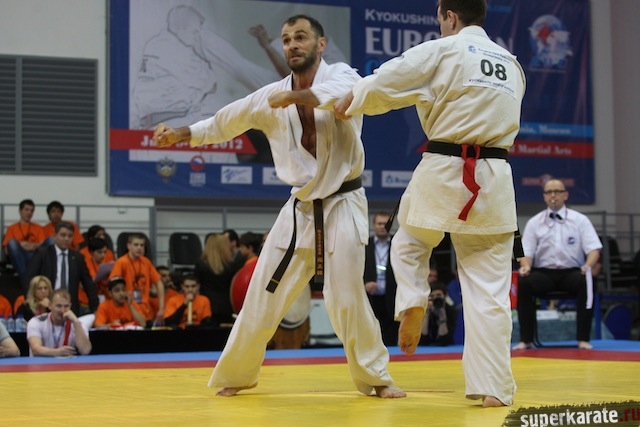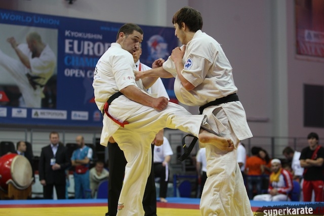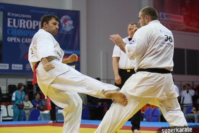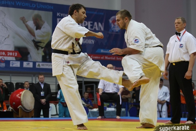Вторая часть фоторепортажа о первом дне чемпионата Европы по киокусинкай (KWU) среди мужчин в абсолютной весовой категории. Турнир проходит 9 и 10 июня в Московском центре боевых искусств.