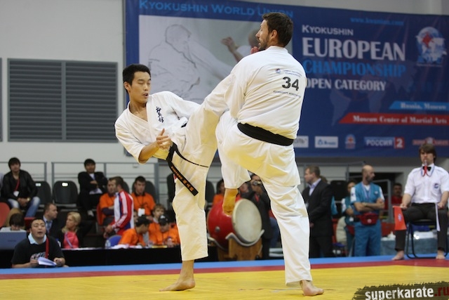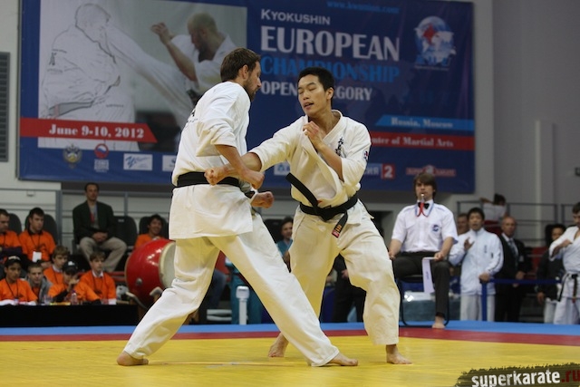 Третья часть фоторепортажа о первом дне чемпионата Европы по киокусинкай (KWU) среди мужчин в абсолютной весовой категории. Турнир проходит 9 и 10 июня в Московском центре боевых искусств.