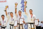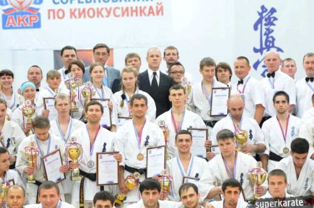 Фотографии церемонии награждения чемпионов и призеров Всероссийского отборочного турнира АКР по Киокусинкай.
