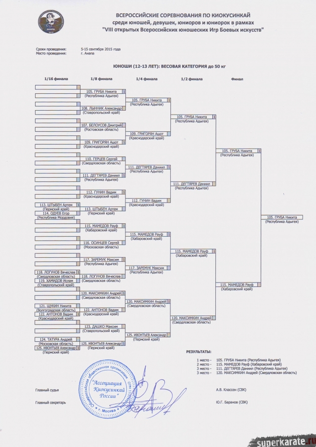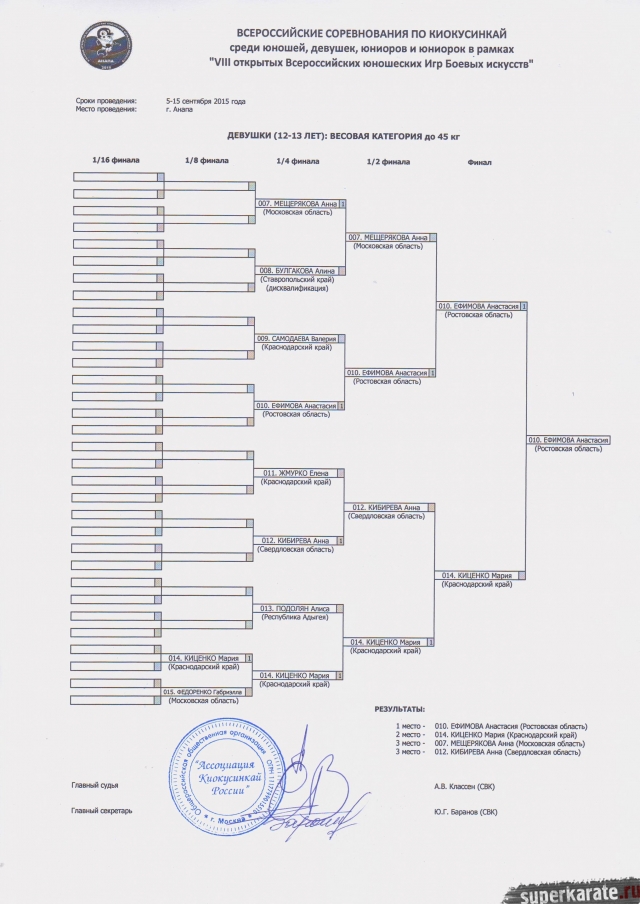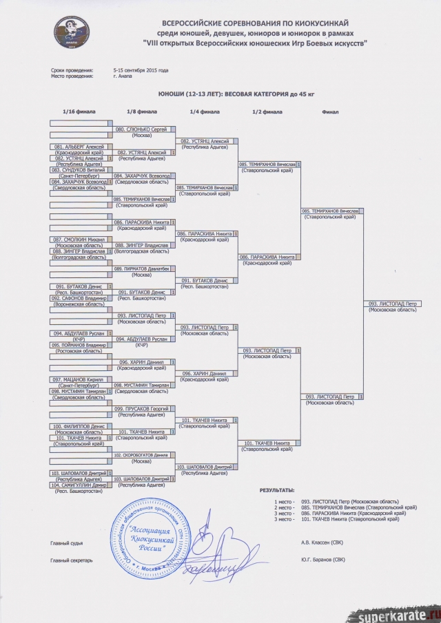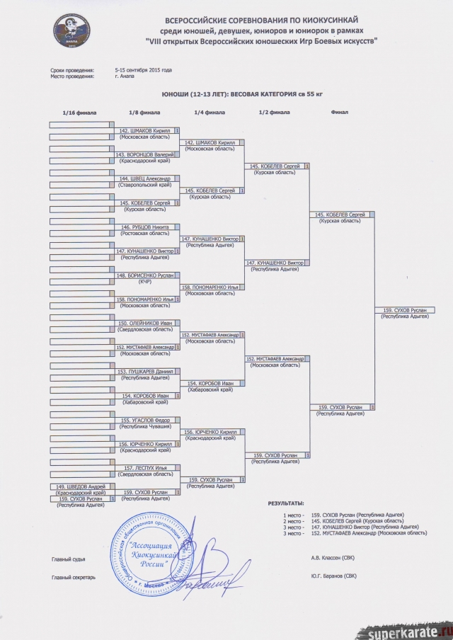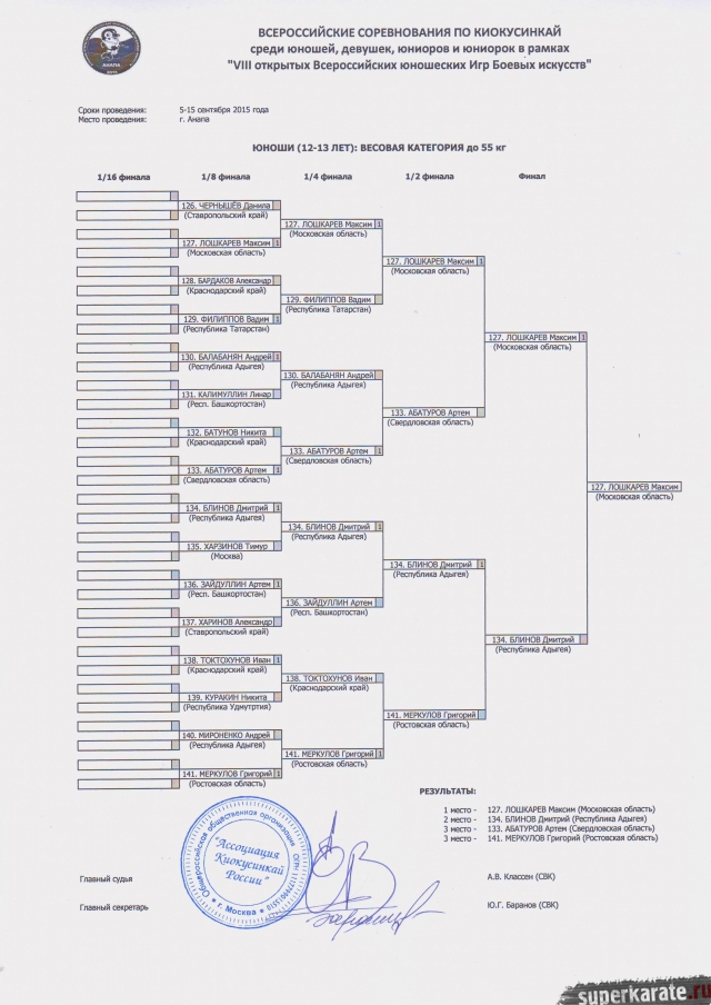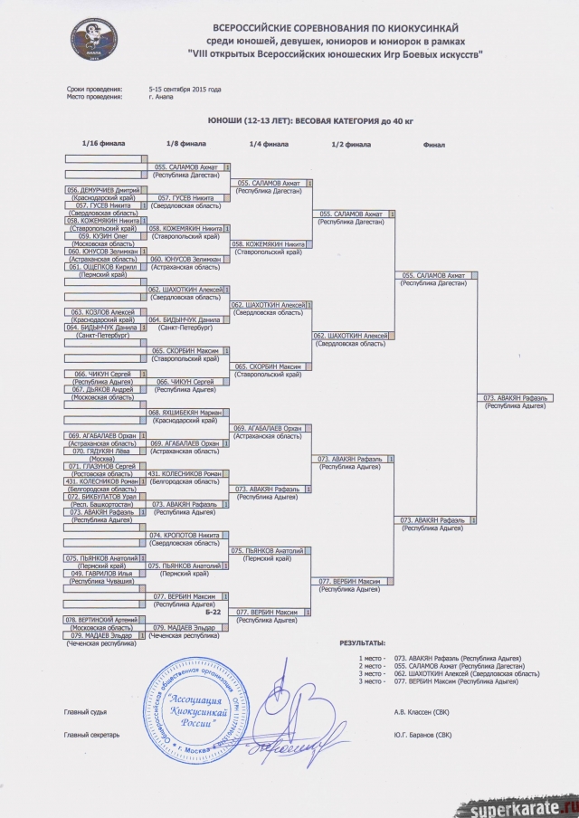 Результаты Всероссийских соревнований по киокусинкай - возраст 12-13 лет
