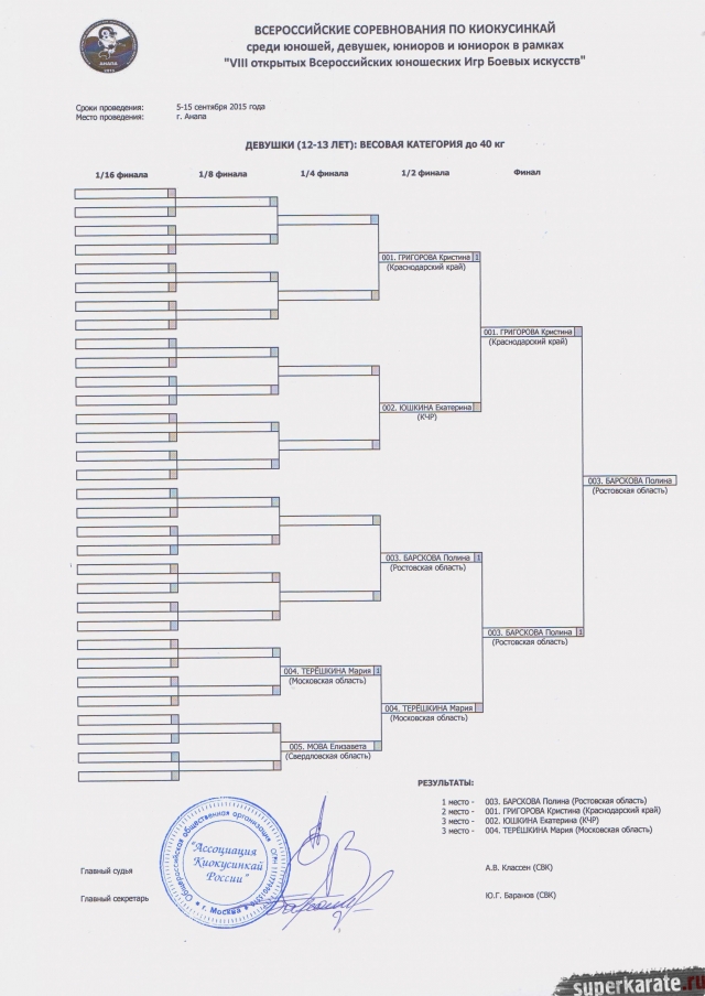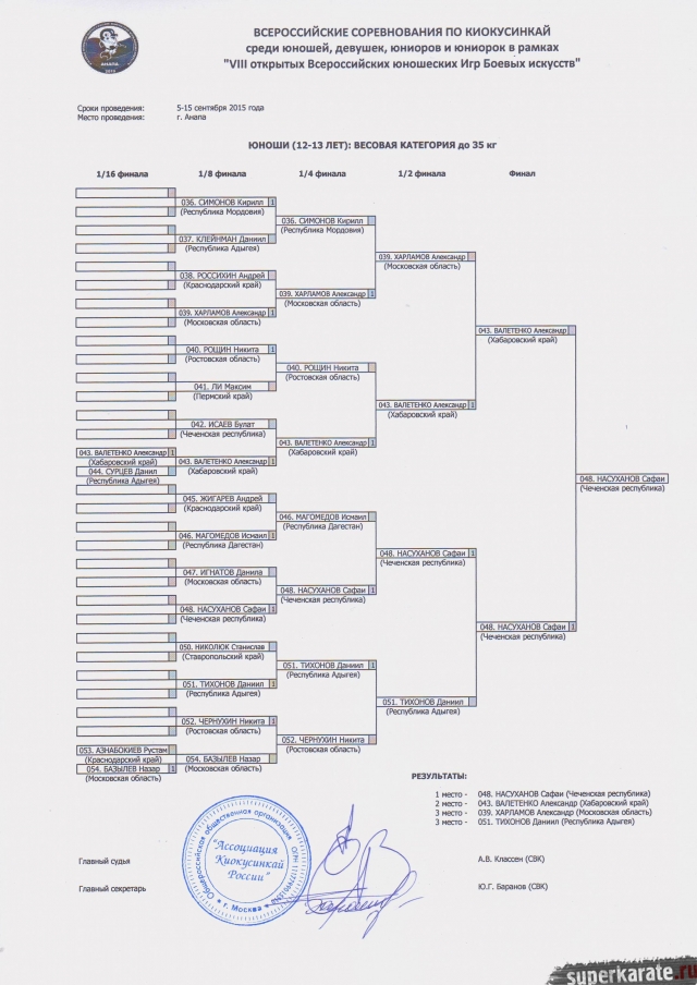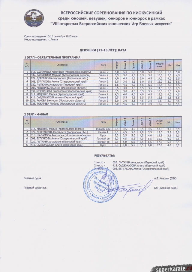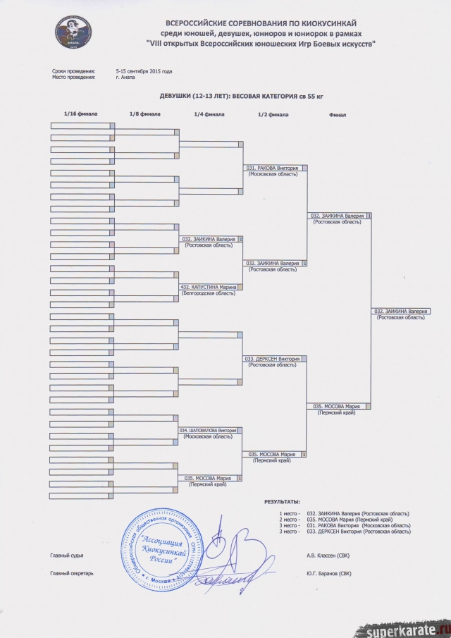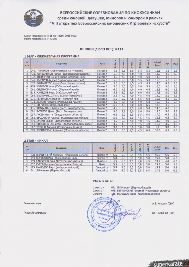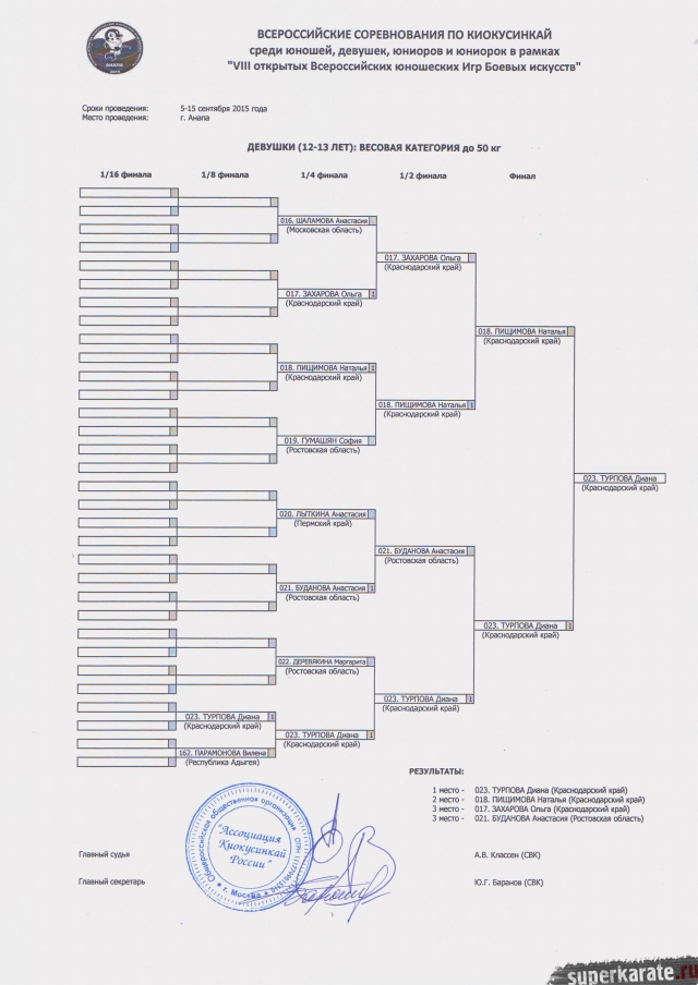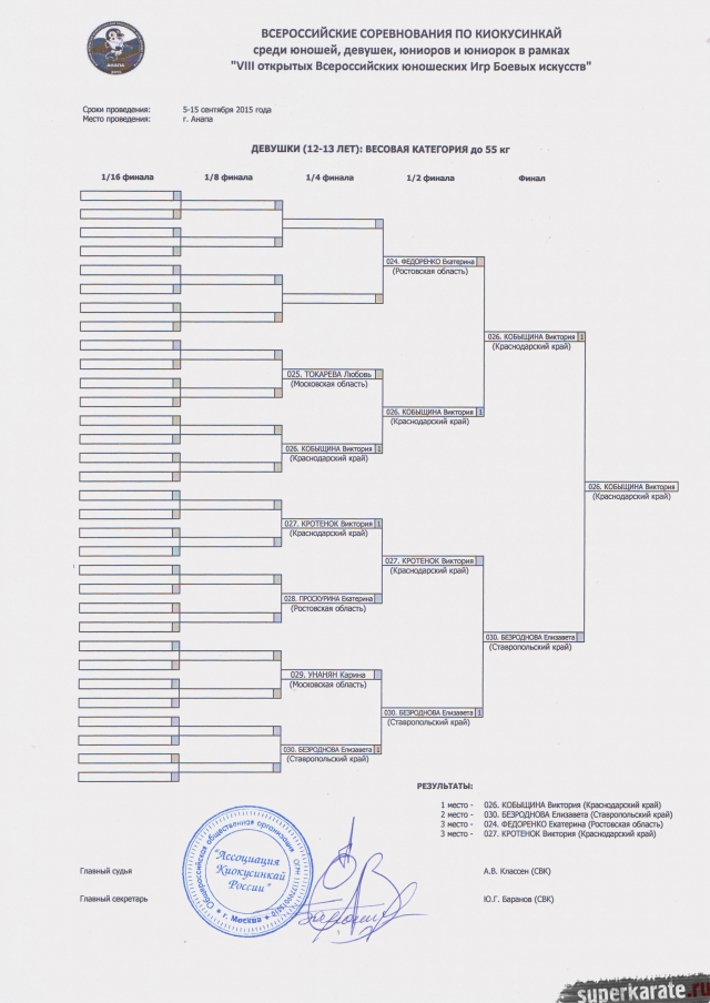 Результаты Всероссийских соревнований по киокусинкай - возраст 12-13 лет