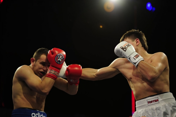 Победное очко в легкой весовой категории до 54 кг гостям принес Нордин Убаали, одолевший Алихана Авторханова по очкам 3:0 (49:46, 49:46, 49:46). Россиянин не смог зацепиться ни за один раунд. Нордин был близок к досрочной победе в 4-м раунде, но Алихан сумел выправить бой, ответив точным правым боковым. Однако на концовку встречи у него не хватило сил.