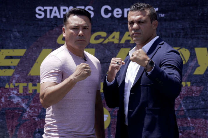 The legends @OscarDeLaHoya and @VitorBelfort came face to face for the first time ahead of their September 11 boxing match. ? pic.twitter.com/uN616ly1HN