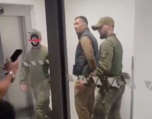 На опубликованных в соцсетях видео правоохранители ведут Усика в наручниках.