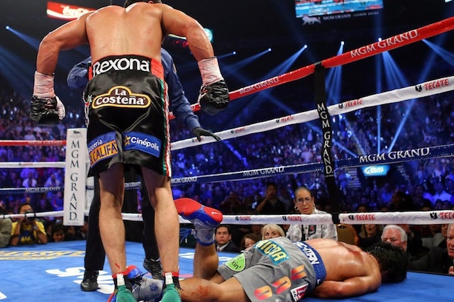 Мэнни Пакьяо разработал блестящий план боя и хорошо выполнял его в течении четырех из шести раундов. Провалившись в третьем раунде, Пакьяо доминировал в первом, втором, четвертом, пятом и большей части шестого раунда. Однако в итоге случилось то, что случилось. Сильнейший удар справа и Мэнни упал, как срубленное дерево.