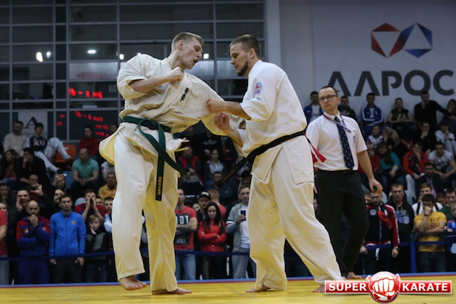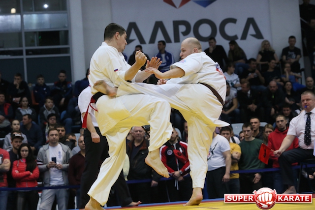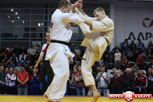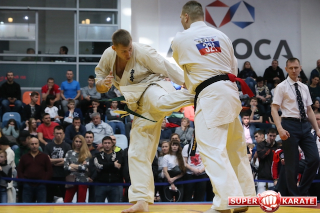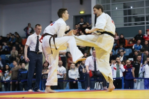 Продолжаем публиковать фотографии, посвящённые боям чемпионата России по кёкусинкай (IFK), состоявшегося 31 марта в Москве, в Московском центре боевых искусств. Бои были разными. Одни были богаты на яркие моменты, связанные с исполнением сложных технических элементов, а другие были менее зрелищными с технической точки зрения, но несли в себе огромное внутреннее напряжение.