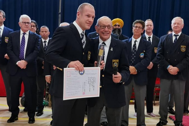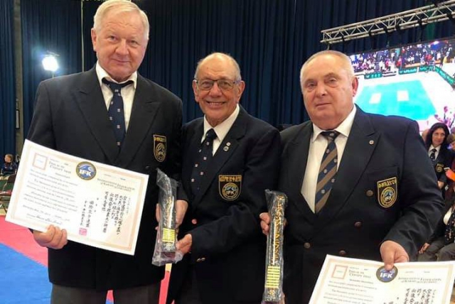 5 октября 2019 года в Кроули, Великобритания, во время церемонии открытия 11-го Кубка Европы по киокушинкай, Ханши Стив Арнейл - глава IFK, 10 дан - вручил высшие пояса руководителям российского ФКР.