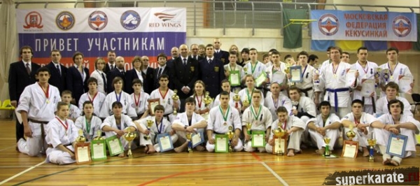 В минувшие выходные состоялись Первенство Москвы по Киокусинкай (12 - 17 лет) и Чемпионат Москвы среди мужчин и женщин. В турнирах приняли участие около 200 спортсменов из Москвы и Московской области, Санкт-Петербурга, Владимирской, Тульской, Челябинской, Архангельской, Брянской, Пензенской областей и Республики Карелия. Почетным гостем турнира стал Президент-основатель ФКР Александр Иванович Танюшкин.