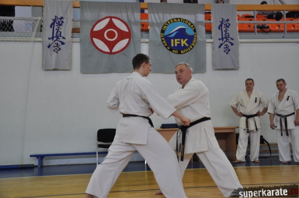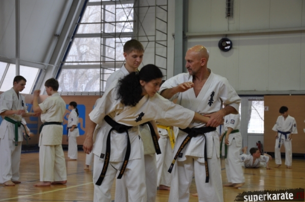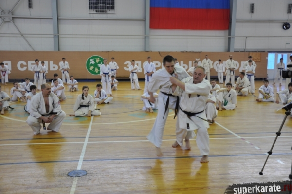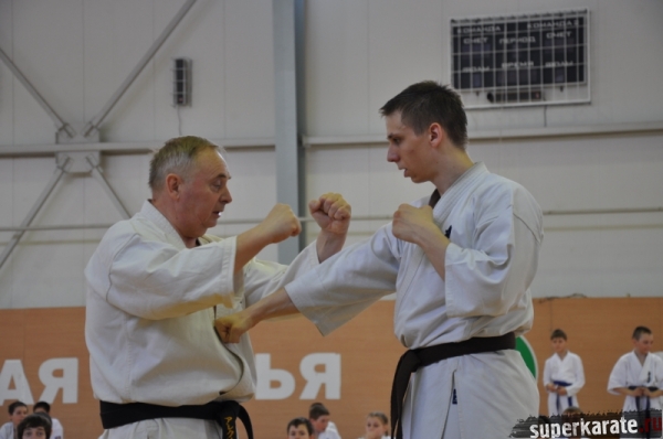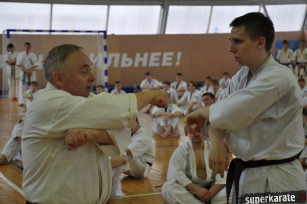 На сборах прошлого года я начал работу по трактовке карате не только как совокупности технических приемов, но и как воинского искусства, и теперь благодаря приглашению Президента Пензенской Региональной организации Кекусинкай Владимира Сычина я смог и дальше логически развивать эту тему. Именно поэтому я провел семинар не вполне в традиционном ключе и не делал акцент на выполнении «голой» техники кихона. Я считаю, что это уже не вполне практично, ведь есть методички, видеоматериалы, на местах подробно изучают эти вопросы. Поэтому я старался донести до участников главную мысль: каратэ - это в первую очередь боевое искусство самообороны. Начиная с 10 кю мы подробно разбирали приемы самозащиты и отрабатывали их в парах.