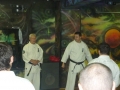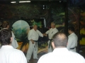Из-за усиливающегося дождя работаем в зале. Места для работы с оружием недостаточно. Бо и саи лежат в стороне. Для человека, практикующего Кёкусин - само тело как оружие. Начальные ката, Тайкёку и Пинаны. Места немного. Необходимо понимание формы, единый временной интервал, взгляд. Шиханы во главе. Всё доступно, всё понятно. Чуть позже вечером - доработка Пинанов. Дыхание Ибуки в Сантин но ката. Жёсткость в Цуки но ката. Сила дыхания и скорость в Гэкисай дай. Компактность движений и прикладуха в Янцу.
