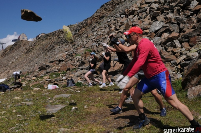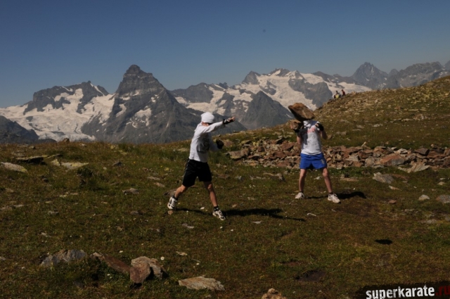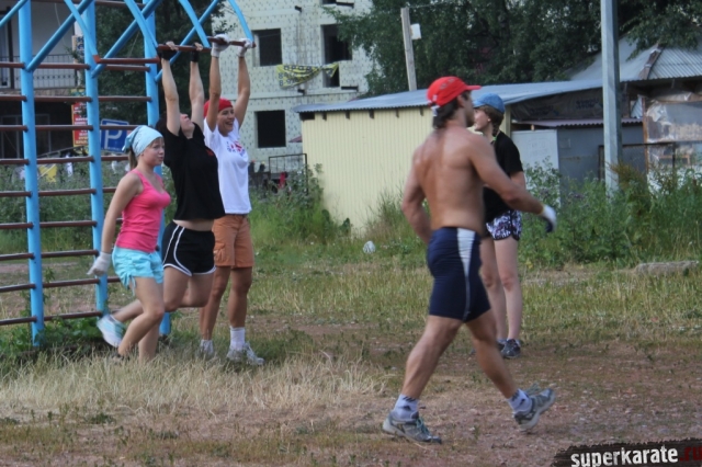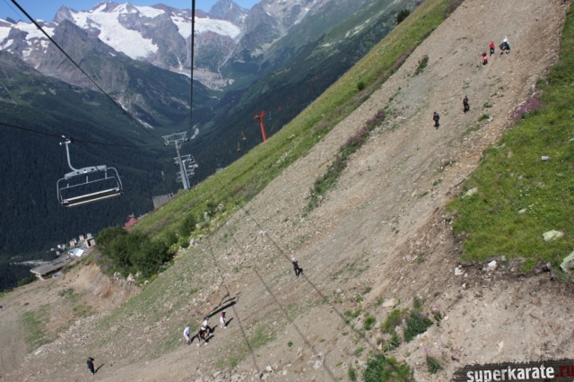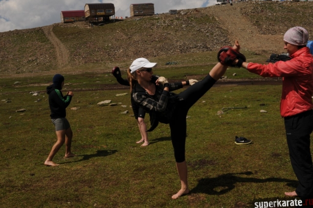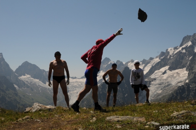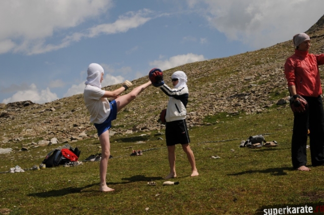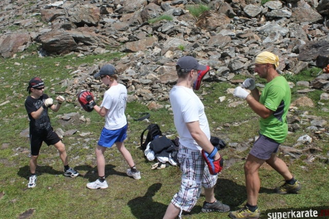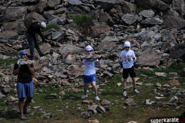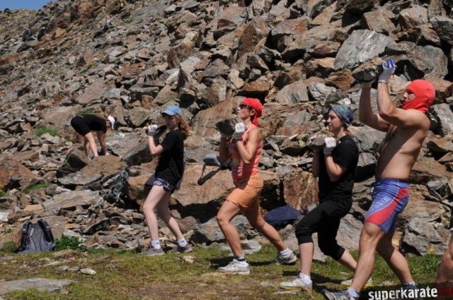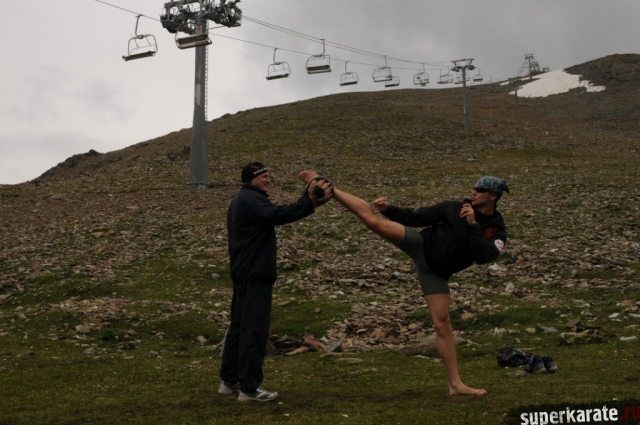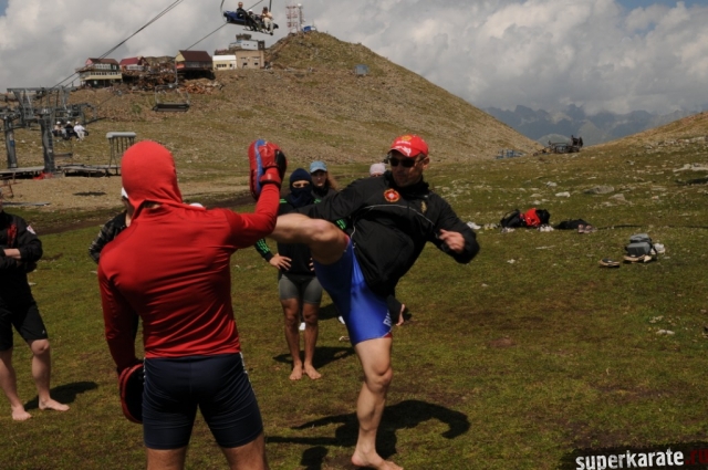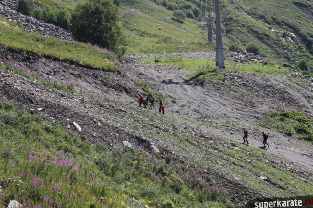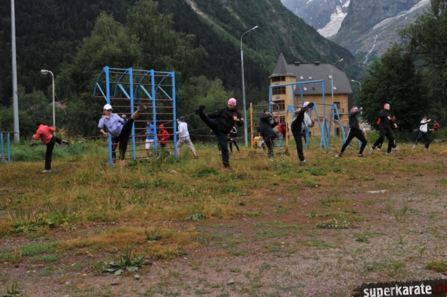 В программе полный спектр тренировок киокусинкай, от легкоатлетических до кумитэ. Особое впечатление конечно от беговых тренировок; этот бесконечный подъем вверх, к вершине! Рекордсменом стал самый молодой участник сборов, 12-летний Вадим Трапезников, забравшийся с 1600м на «трёшку» за 1.5 часа!