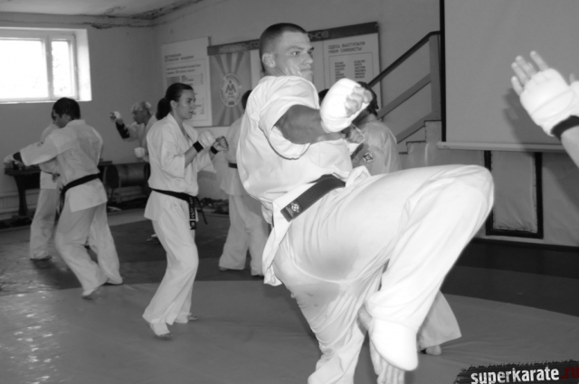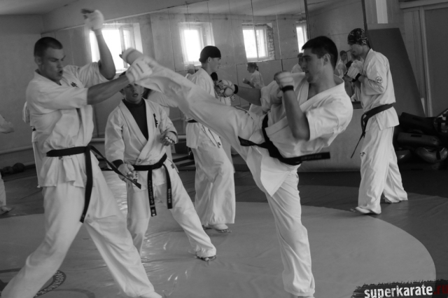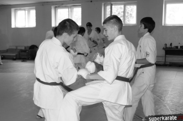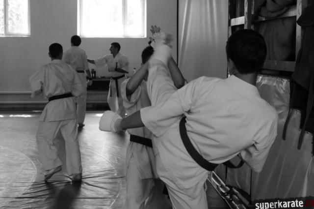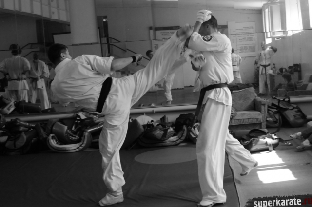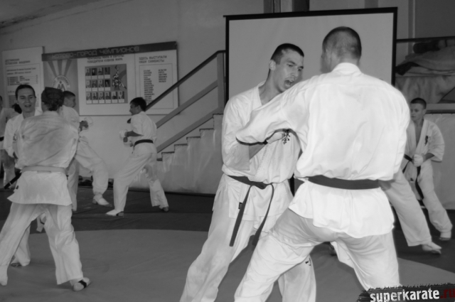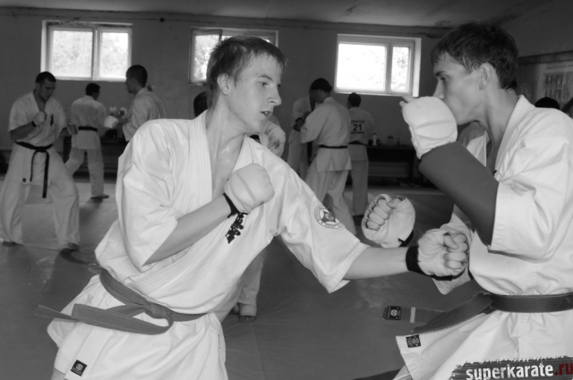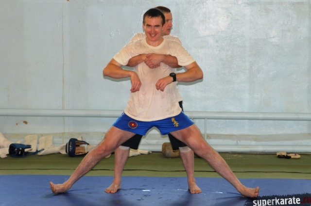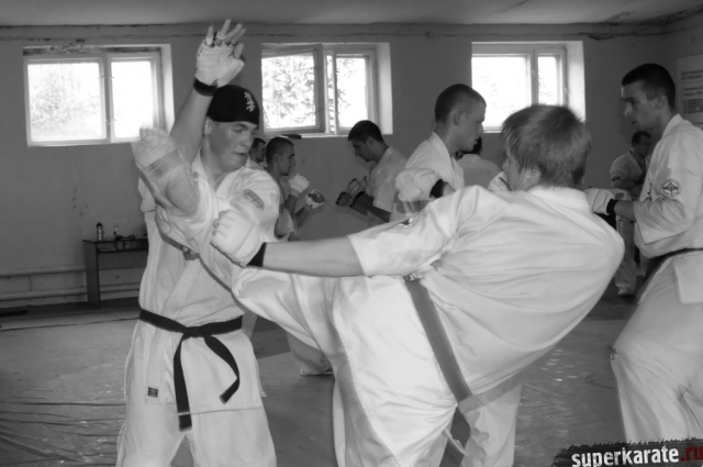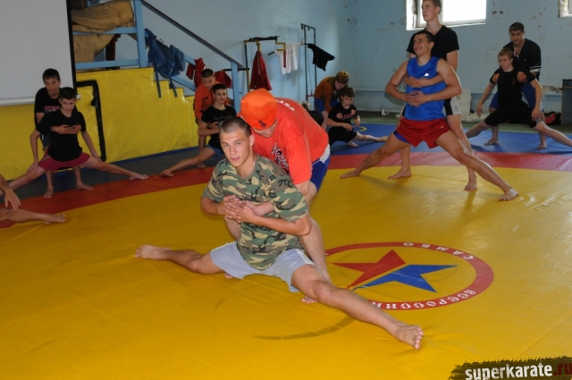 растяжка, днем спарринги по заданию, вечером пробивки на снарядах. Весь