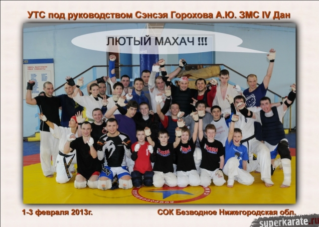 1-3 февраля на базе Международной Олимпийской Академии Спорта с.Безводное (Нижегородская область) прошел этап подготовки Нижегородских каратистов к Чемпионату и Первенству России ФКР, под руководством ЗМС Алексея Горохова, которые являются отборочными на 4 Чемпионат и Первенство Мира IFK. Также в сборах приняли участие каратисты из Балашихи, Самары, Магнитогорска, Владимира и Мордовии.