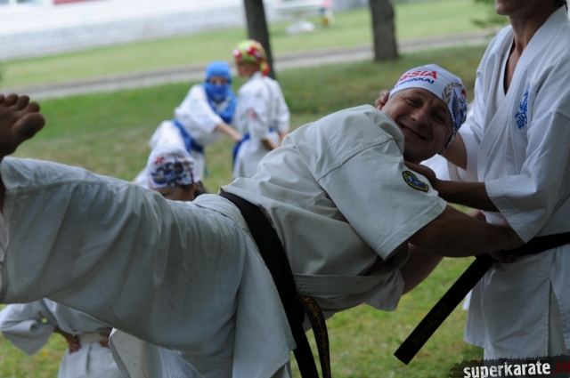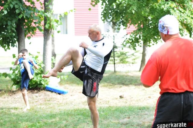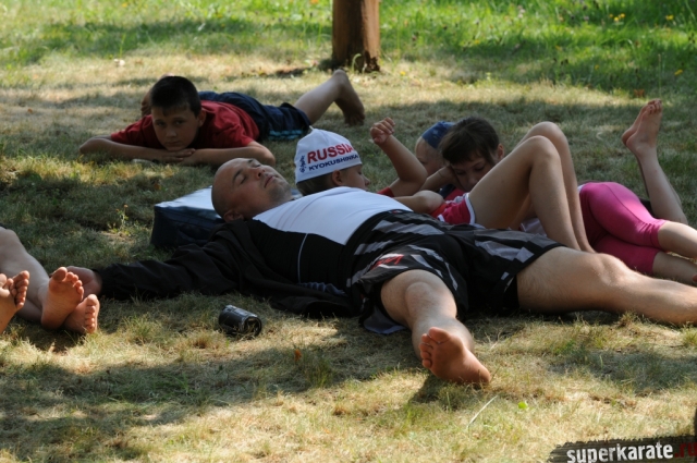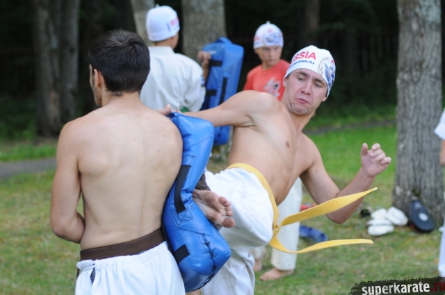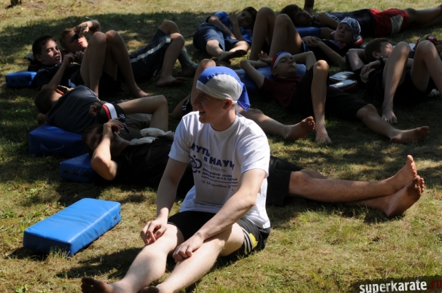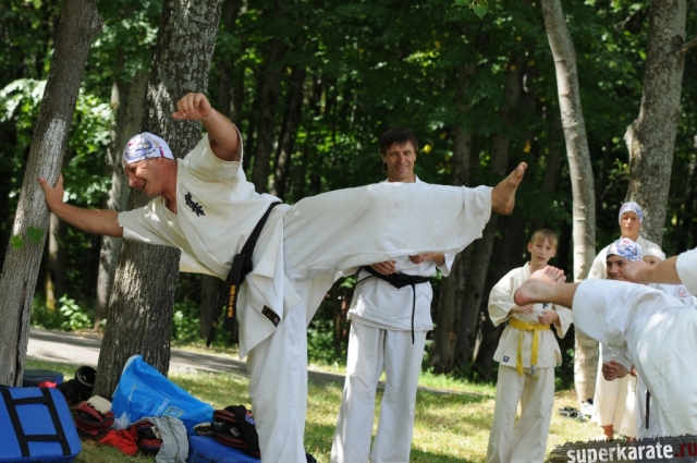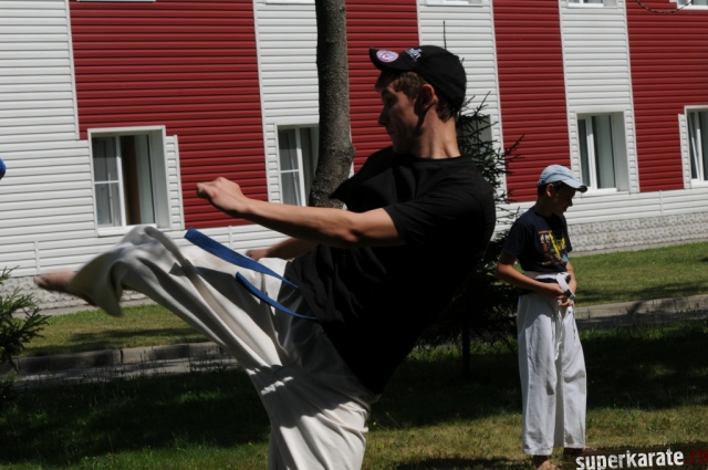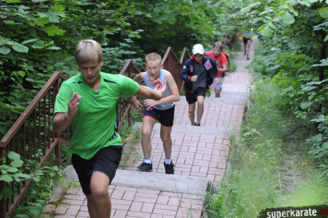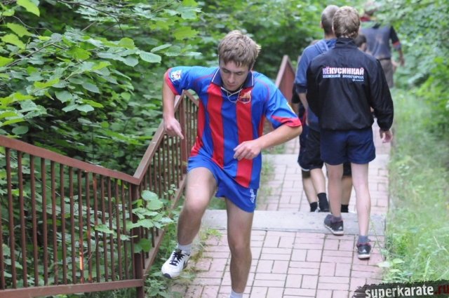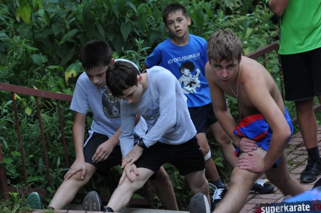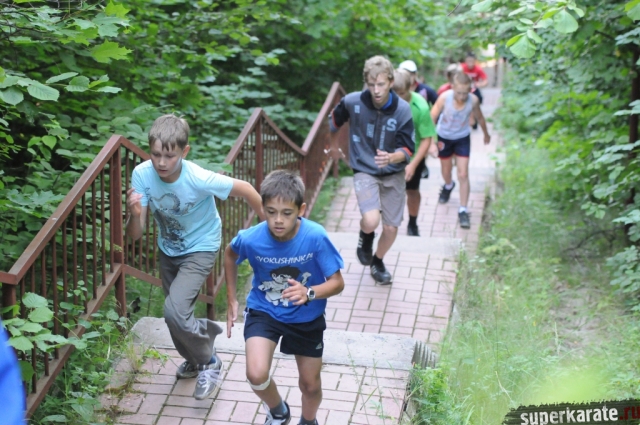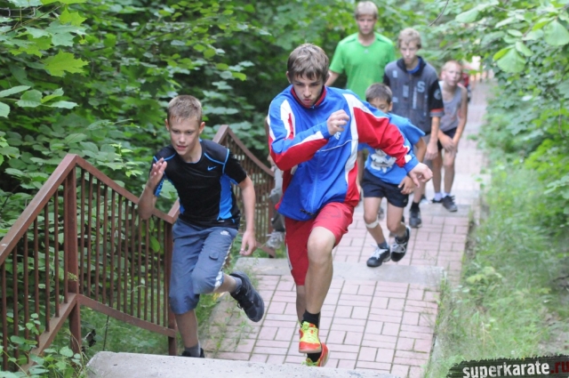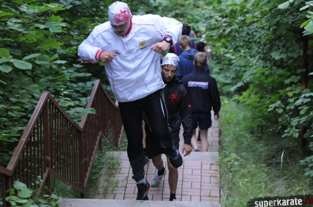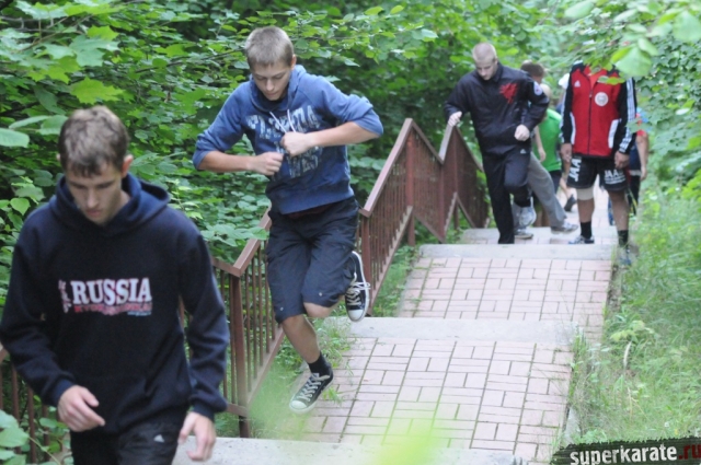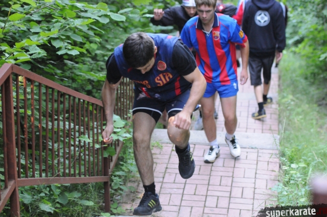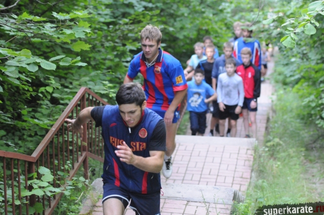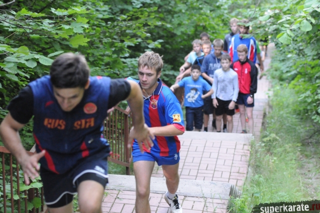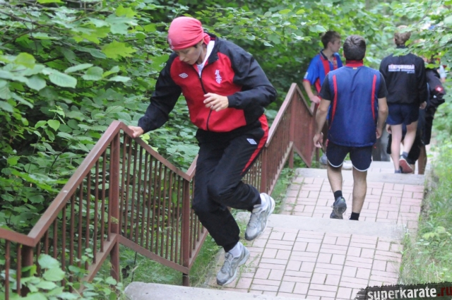 Алексей Горохов, фанат Нижегородской Чкаловской лестницы (кто бывал в Нижнем, тот поймет), тут же нашел в окрестностях лагеря лестницу с приличным количеством ступенек, которая на 5 дней стала для каратистов самым изнуряющим тренажером, ибо способности придумывать новые упражнения Шихану не занимать!