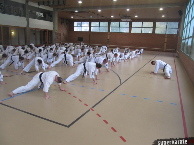 Первая тренировка была посвящена общей физической подготовке бойца Киокусинкай. Более 2 часов спортсмены осваивали особенности русской школы физической подготовки. Многие участники, к сожалению, показали недостаточный, для высоких спортивных результатов, уровень силовой подготовки, выносливости и гибкости.
