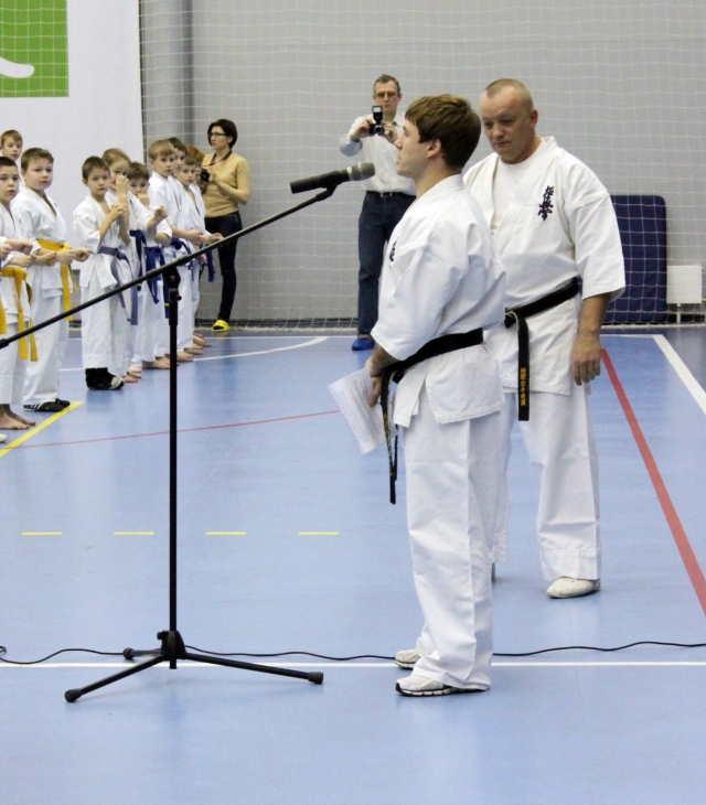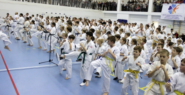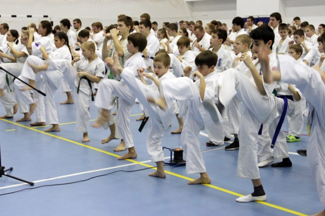 Более 400 каратистов собрались в большом зале ФОКа «Газпром» для того, чтобы сделать 2014 ударов и торжественно произнести клятву Кёкусинкай «Додзе-кун», вместе с заслуженным мастером спорта, Чемпионом Мира 2013 года Дмитрием Савельевым.