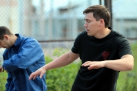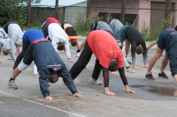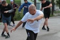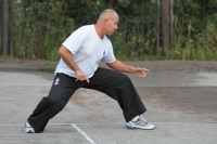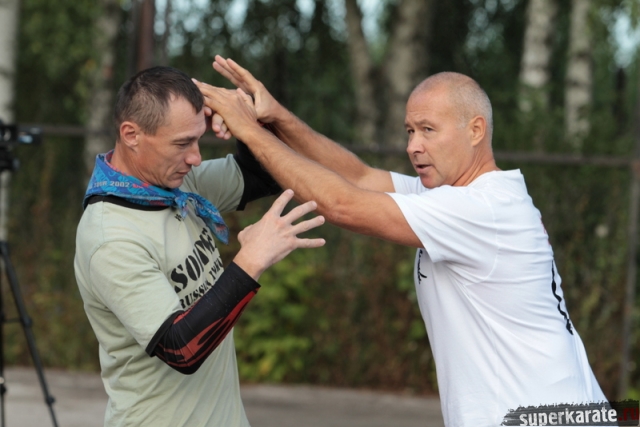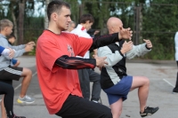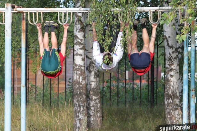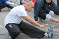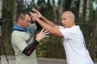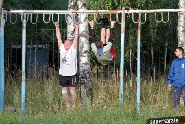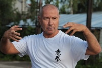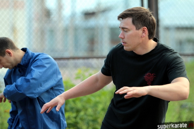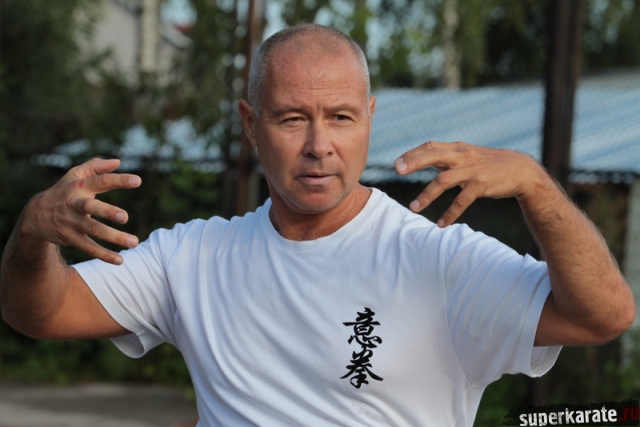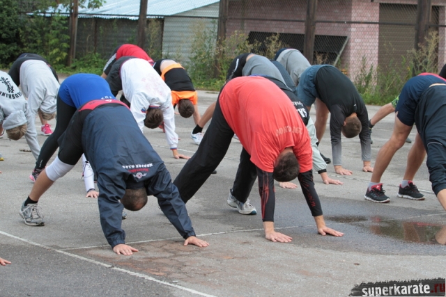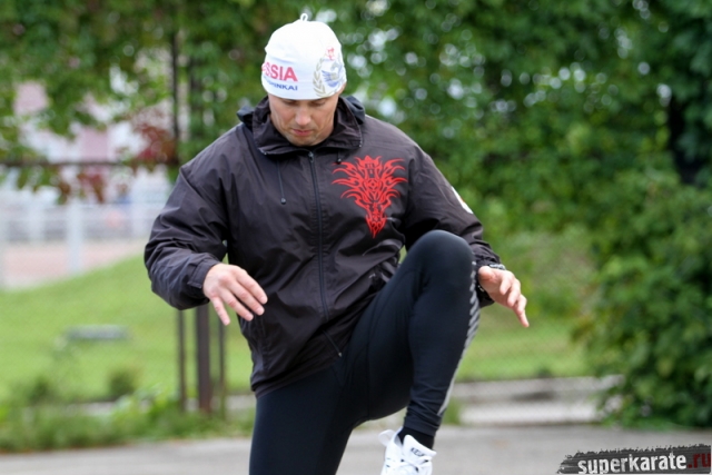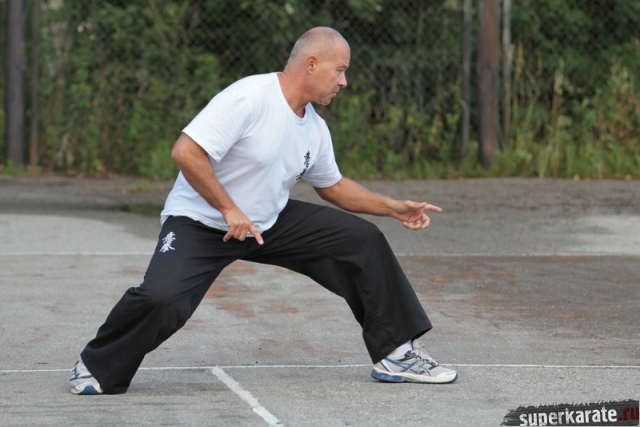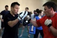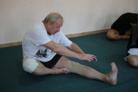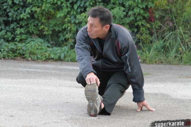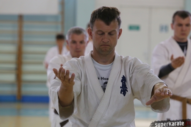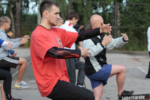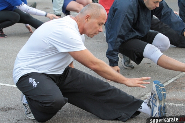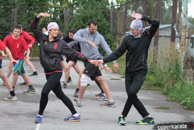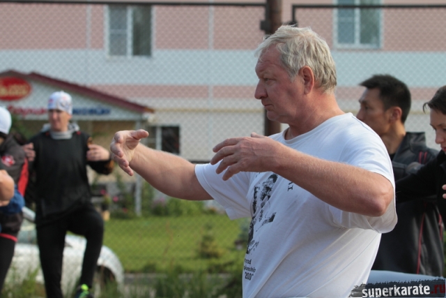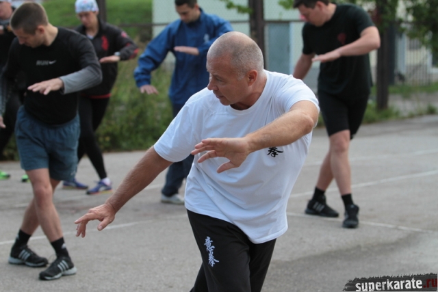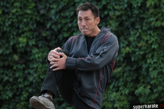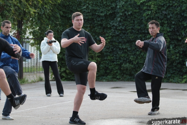 В день семинара на утренней тренировке в Безводном, шихан Казуми принял активное участие в разминке Анатолия Криводедова и с видимым удовольствием делал упражнения из ицуань.