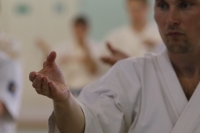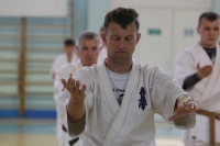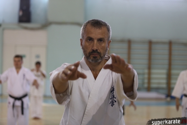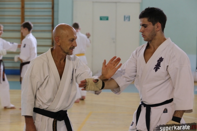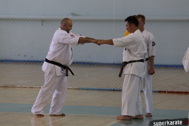 Все мы помним и ценим мастерство бойца Казуми за его рационализм и эффективность. Точно также был разложен по деталям и семинар мастера - рационально и эффективно. Лишние детали и упражнения отсутствовали полностью. И хотя темп, особенно первой тренировки, был "улиточный", но без отработки тончайших моментов в перемещениях и контроле своего тела, переход к элементам кумитэ на второй тренировке попросту потерял бы "эффект Казуми".