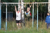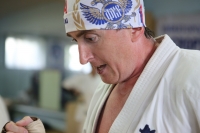 Казуми прилетел на нижегородскую землю за день до своего семинара и принял участие в трех тренировках на спортивной базе "Безводное", где у Алексея Горохова проходят финальные летние предсезонные сборы. Японский мастер подключался к тренировкам и где-то работал сам или с шиханом Гороховым в паре, иногда поправлял кого-нибудь или выбирал себе напарника из спортсменов и работал с ним по общему заданию или по собственному плану.