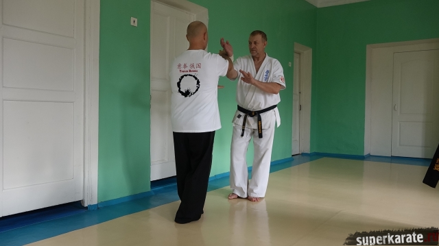 В этом месте Шихан сказал, что участники мастер-класса очевидно знакомы с практикой столба и шага трения (Моцабу – Ицюань).