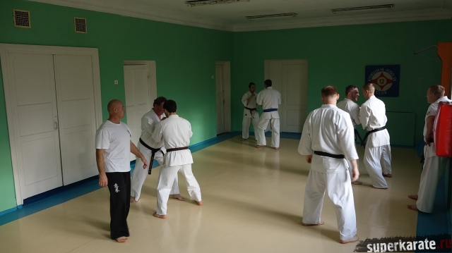 В Подольске вместе с сенсеем Владимиром Смолянкиным и его инструкторами мы шаг за шагом вместе разобрали простые внешне, но наполненные важными деталями, упражнения. Так как участников было немного – 10 человек, мы углубились во все нюансы движений, учитывая индивидуальные особенности каждого. Кроме того я имел возможность по ходу практики отвечать на возникающие вопросы.