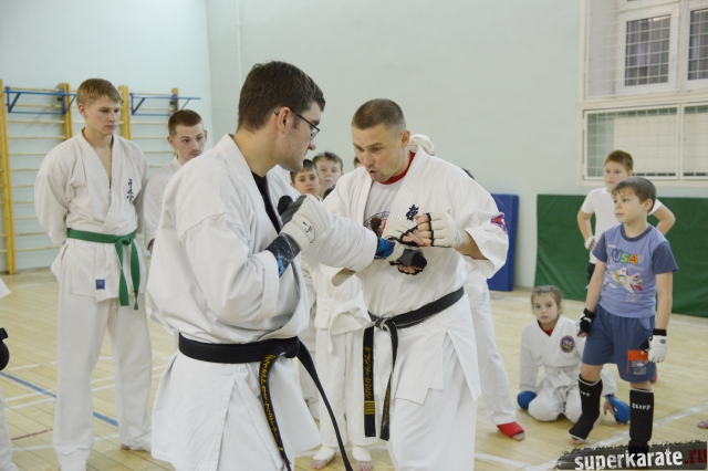 И если в первый визит определенной темы семинара не было, тогда шихан присматривался к мурманским каратистам, то в этот раз велась точечная работа - раскручивали бёдра.